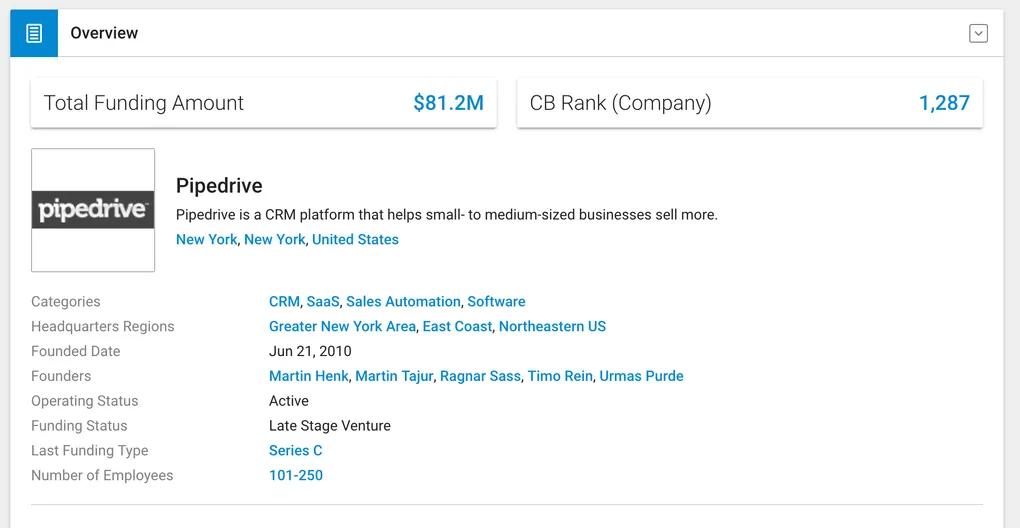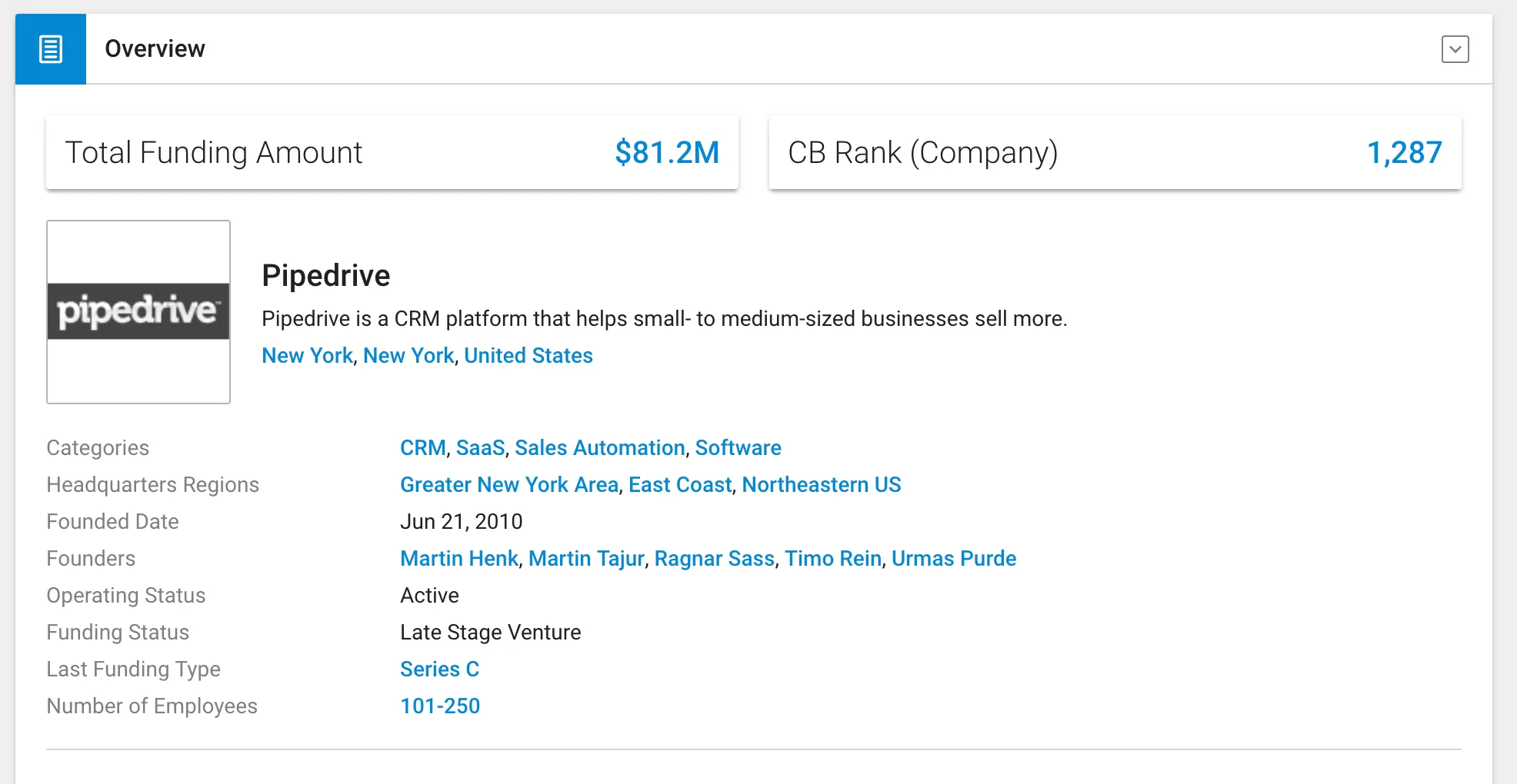 Pipedriveは後期ステージのベンチャー企業で、シリーズCまで資金調達を完了しています。